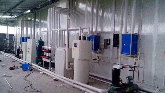 (1)制冷系统:气调库的制冷设备大多采用活塞式单级压缩制冷系统,以氟利昂R22作制冷剂,库内的冷却方式可以是制冷剂直接蒸发冷却。